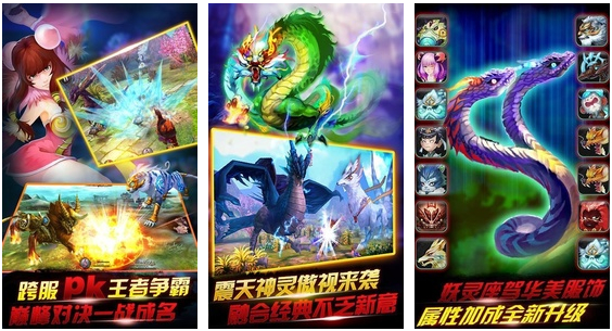 游戏采用360度全方位视觉,昼夜不同的天气刻画,如梦如幻的游戏场景,让剧情的体验有如身临其境。游戏中上千种逆天神宠及其千变万化的强大技能和玩家一起在冒险旅途中降妖除魔、一路前行!震撼激烈的打斗场面更是颠覆了传统手游的质感,带给你最爽快最逼真的游戏体验!
