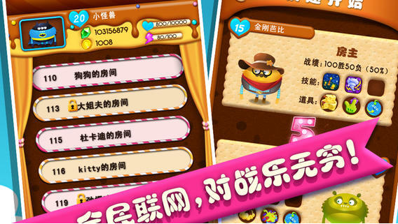 《有怪兽》是一款可爱风格的三消游戏,Q萌的三眼人物,看上去很喜感,玩法和和对对碰差不多,你可以一个人玩单机也可以和其他玩家实时对战,是个不错的休闲游戏。