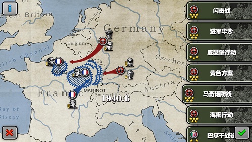 你需要在作战中不断的积累功勋,从一个士兵晋升为元帅。注意指挥部中军事设施的升级,在战争中它们会对你提供必要的援助。雇佣其他将领加入到自己的阵营,发挥出每一名将领的特长也非常重要。如果让隆美尔将军指挥装甲部队或者让尼米兹将军指挥海军部队,那将最大程度发挥出他们的作用。军团模式中你可以非常自由的指挥战场上任意一个将领和他的军团去战斗。游戏还提供了网络对战模式,不仅可以通过WIFI和蓝牙与现实中的好友对战,还可以通过Game Center与全世界的玩家一决高下。加入自动匹配技术,找到对手的几率将大幅提高。3种不同类别的教程可以让你充分的掌握如何进行游戏。